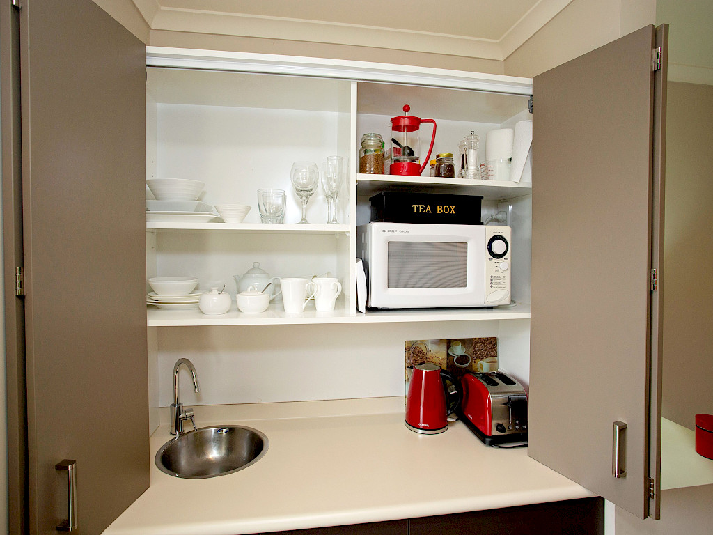 Our studio apartments, Mt Isobel and Mt Dunblane, have small kitchenettes (microwave no hob).